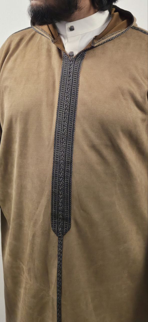 Wrap yourself in elegance and comfort with our Tanned brown Faux Suede Winter Jallaba. Designed with a velvety-soft finish, the premium faux suede offers a luxurious feel while providing warmth and breathability throughout the colder months. The smooth drape and refined texture elevate the classic Jallaba design, giving it a modern and sophisticated edge. Lightweight yet durable, this piece resists stains and marks, making it both stylish and practical for everyday wear. A timeless addition to your winter wardrobe, crafted for comfort, made for style.