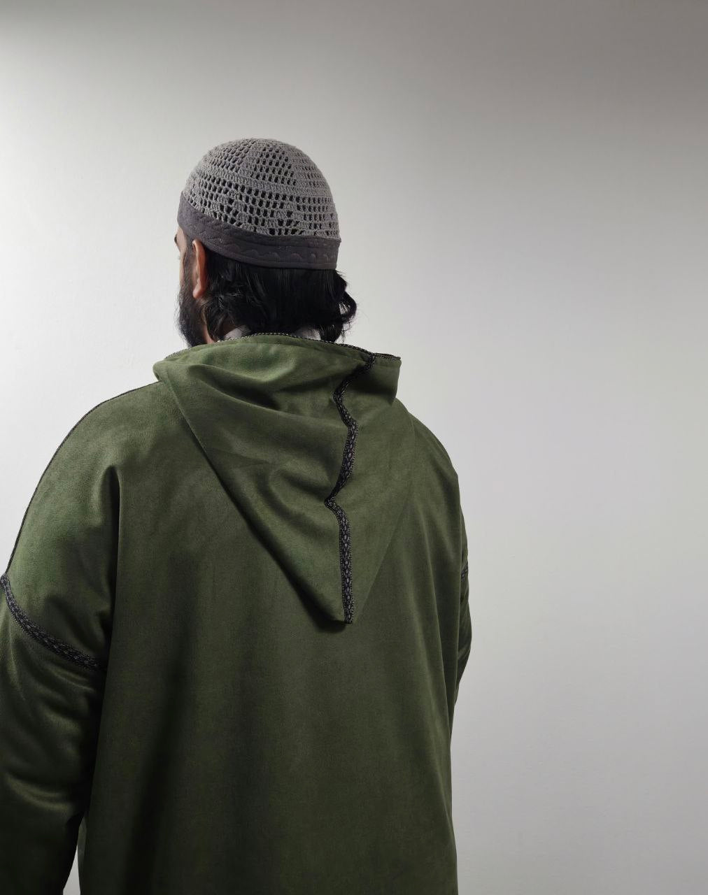 Wrap yourself in elegance and comfort with our Olive green Faux Suede Winter Jallaba. Designed with a velvety-soft finish, the premium faux suede offers a luxurious feel while providing warmth and breathability throughout the colder months. The smooth drape and refined texture elevate the classic Jallaba design, giving it a modern and sophisticated edge. Lightweight yet durable, this piece resists stains and marks, making it both stylish and practical for everyday wear. A timeless addition to your winter wardrobe, crafted for comfort, made for style.